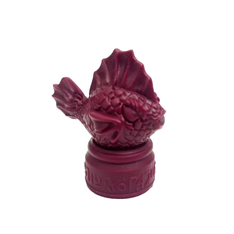 A ruby fish 1st player figure to use when playing Above and Below: Haunted.
